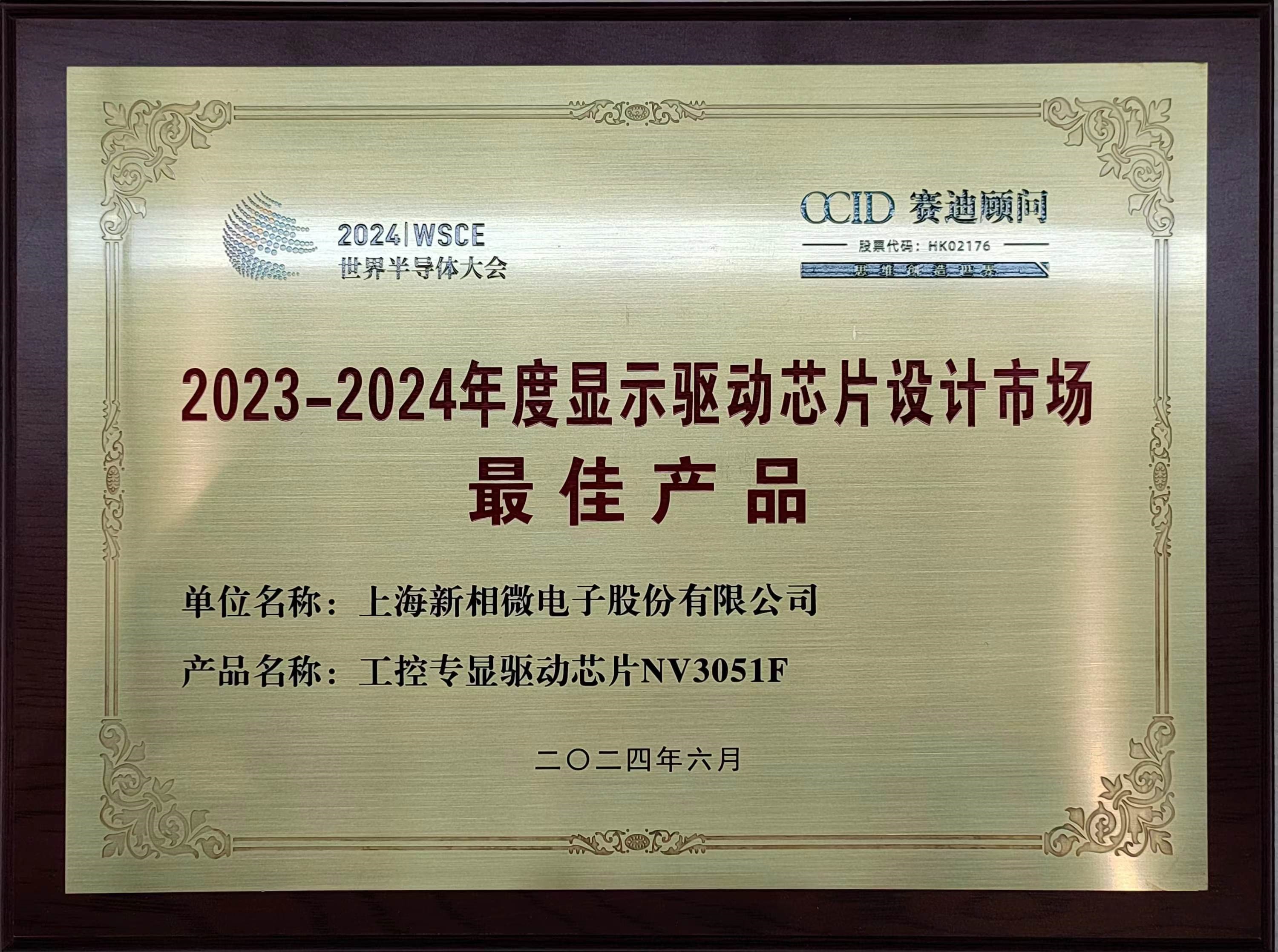 荣获“2023-2024年度显示驱动芯片设计市场最佳产品”