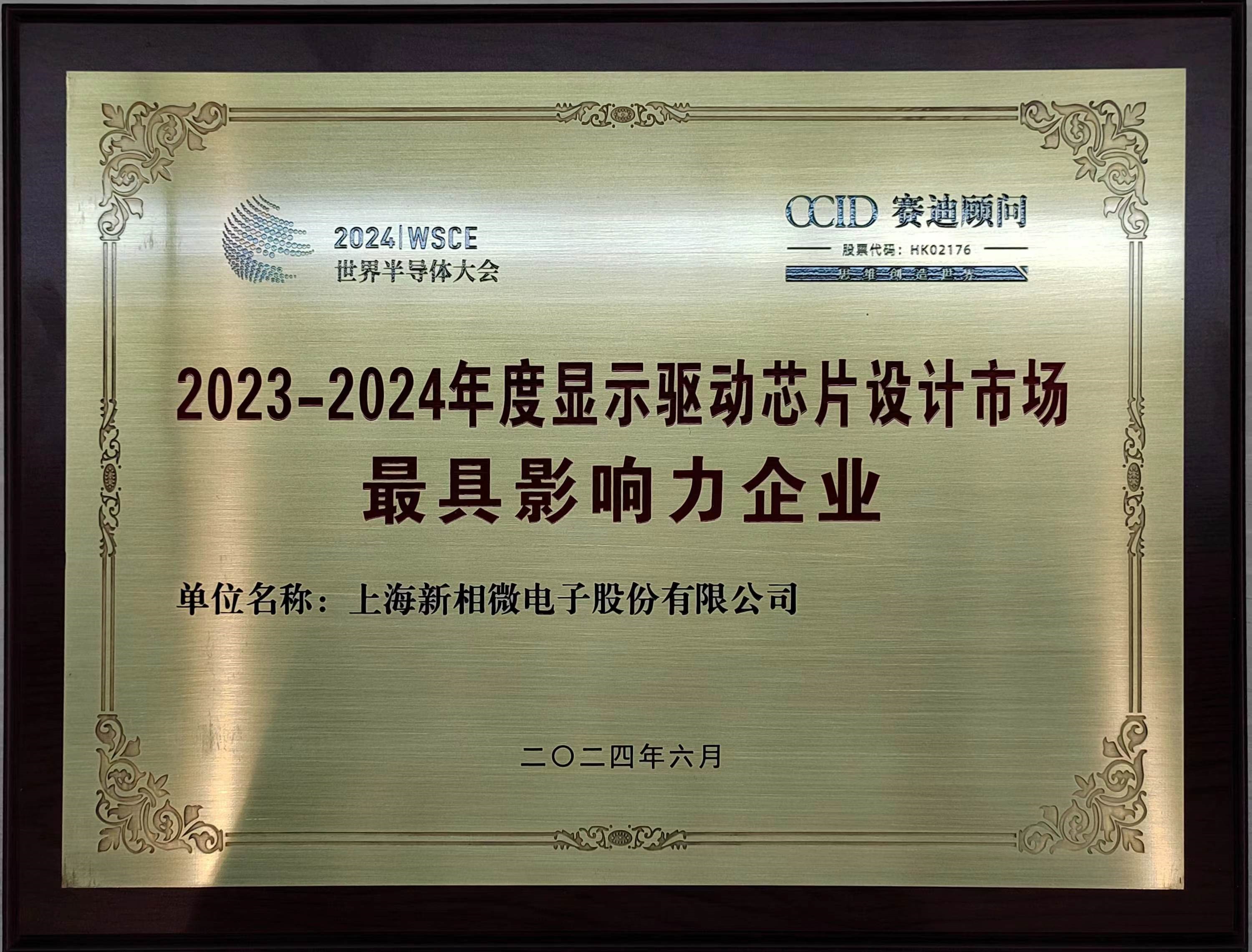 荣获“2023-2024年度显示驱动芯片设计市场最具影响力企业”